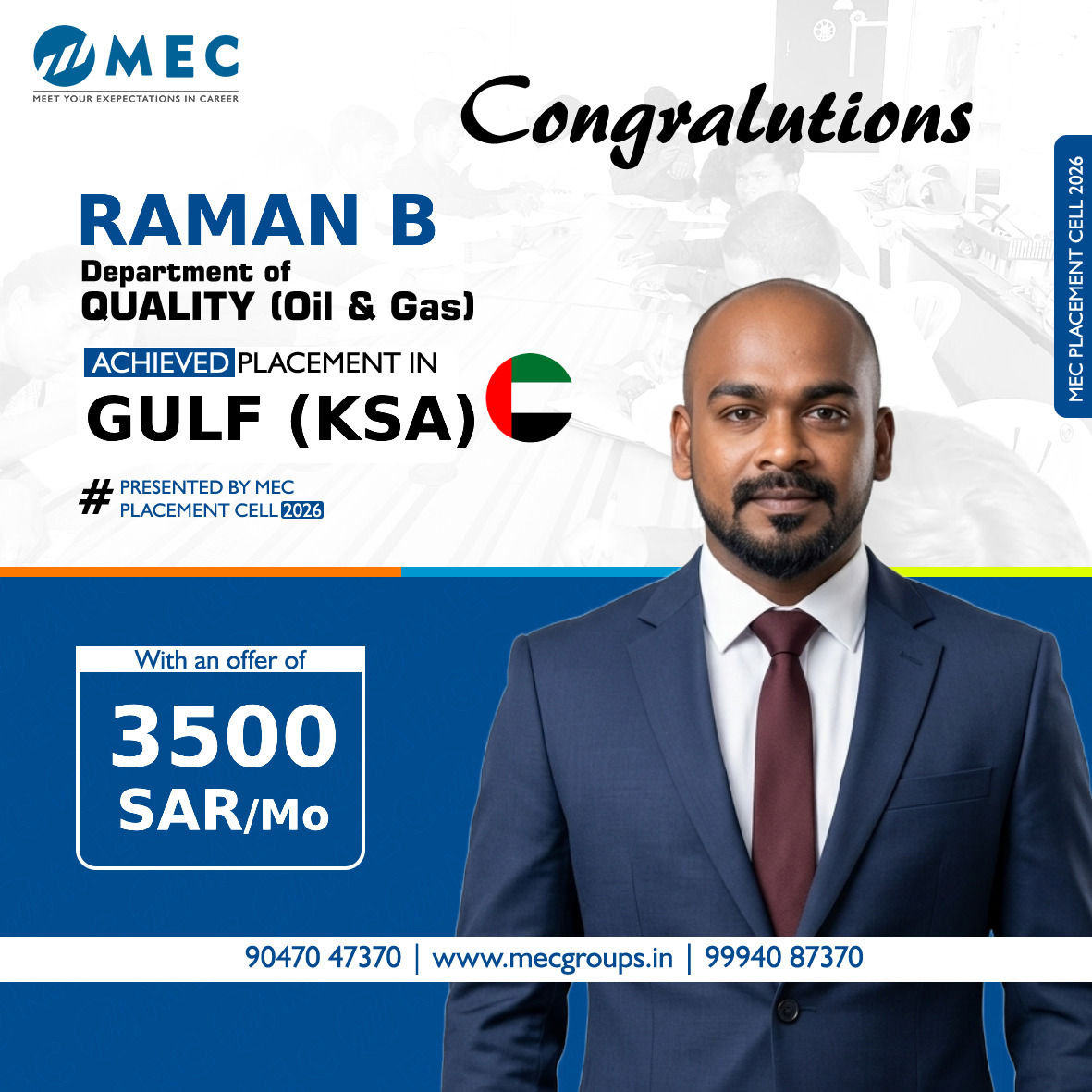 Mr.Raman B is Placed in Saudi as a Welding QC After Completion of CQI Course in #MECChennai #MECCoimbatore #ndttrainingincoimbatore